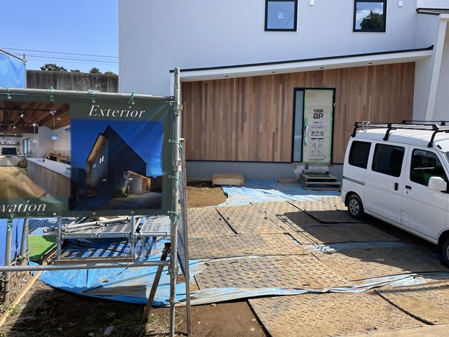 外構Tさんがタイルデッキ下地準備に入ってくれてます♪