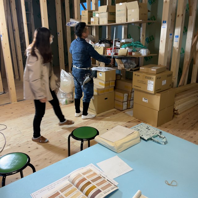 せっかく集合したので、下地の位置を大工Kさんと外構Tさんでチェック!