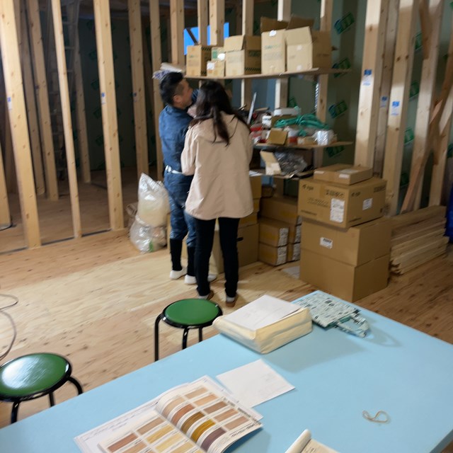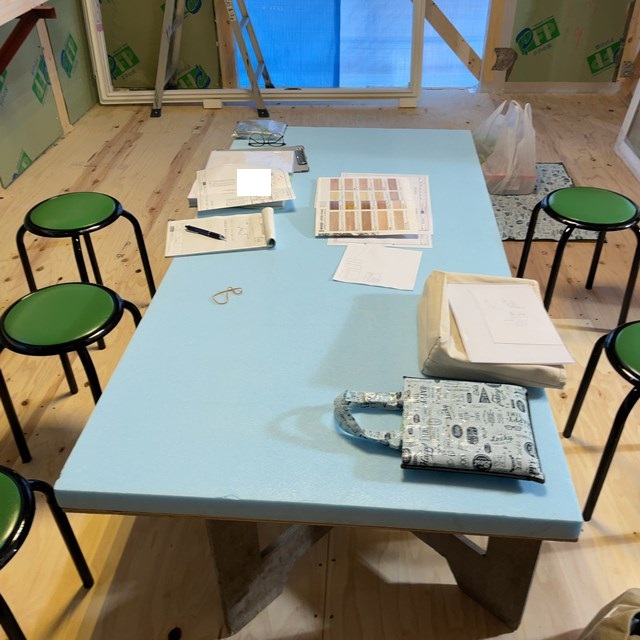 現場着くと、大工Kさんが打ち合わせテーブル用意してくれてた✨