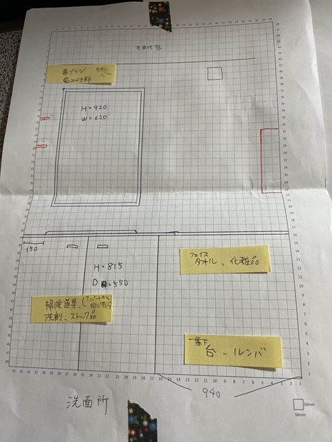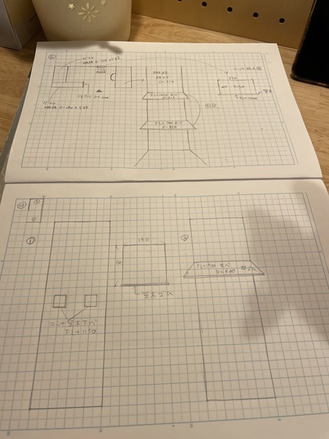 マス目のノートで縮尺を合わせて書くと、造作したい事が