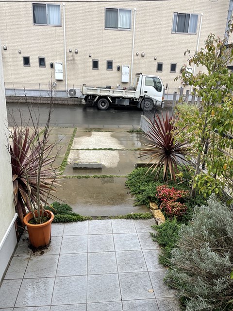 K様邸は隣地ブロックがあるので、それで高さを見てカントクゥ~に電話📞