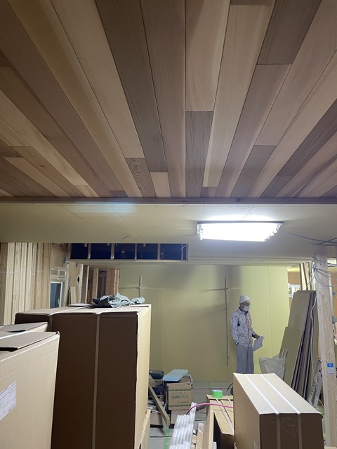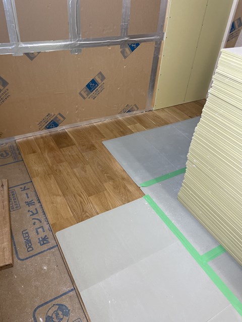 大人買いさせていただいたオーク材も張られ始めてますぅ⤴