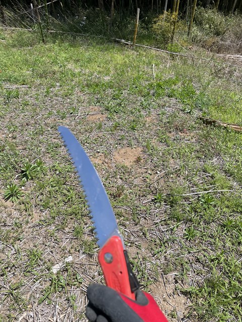 ちょっと粗めに刈ったのは、除草剤が効きやすいようにするためよ。