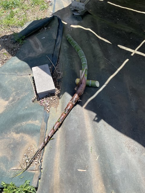 コレ、今年生えた竹。大きくなる前はタケノコで美味いんだけどね。。。
