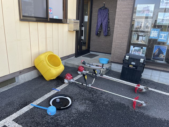 お次はぁ~平屋モデルとリノベーションモデルに除草剤を散布して~