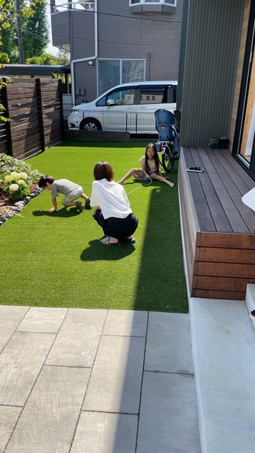 因みに、こちらの芝はT様がご自身で下地からやったんですよ😳