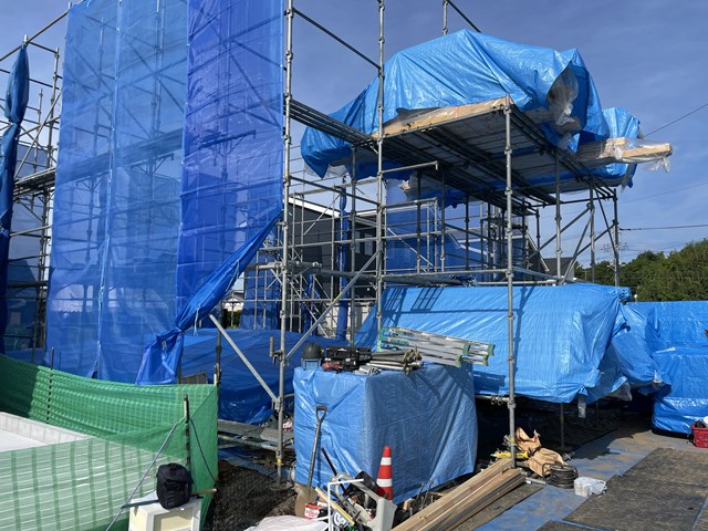 自分でブルちゃん養生やると、なんでこんなにブルーシート掛け難い