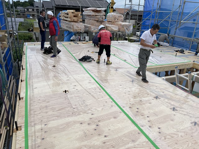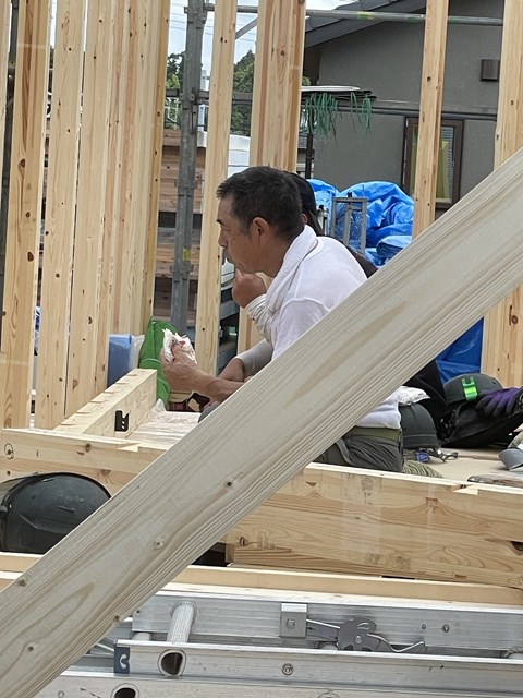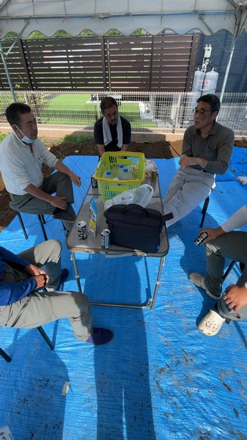 暑くなって1発目の上棟なので、結構みんなお疲れちゃんモード(;´∀`)