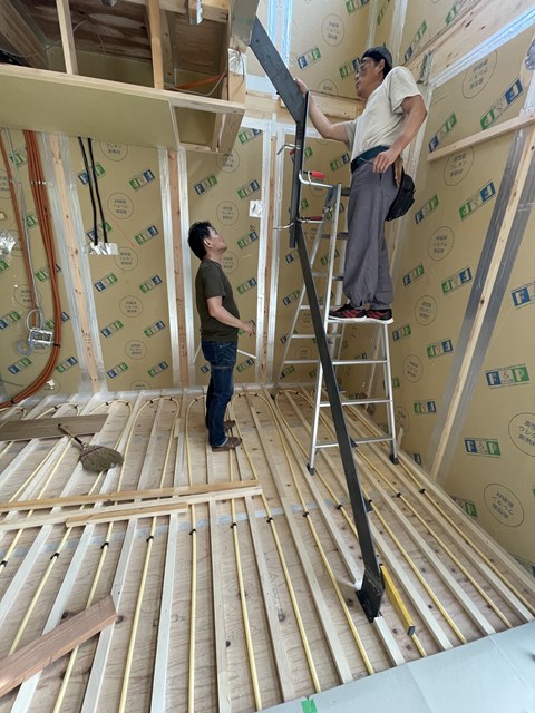 鉄骨階段納品前の現場合わせに鉄骨Yさんが来てますぅ⤴