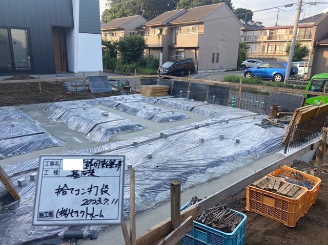 明日からスラブ配筋組むのね。お暑い中、基礎Fさん頑張れー!