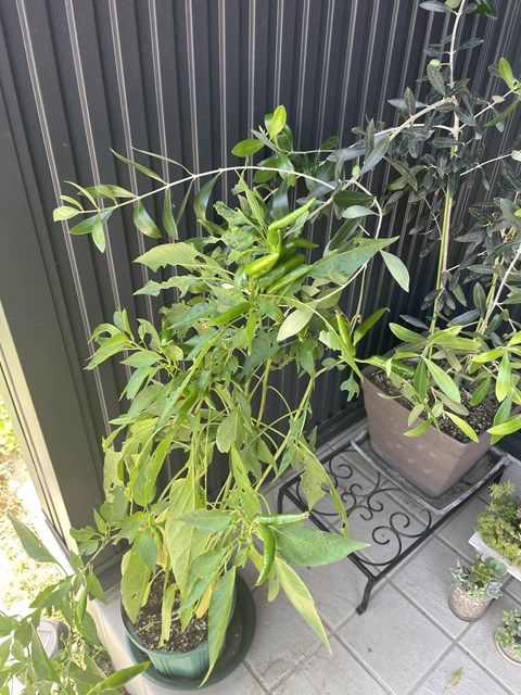 プランターの鷹の爪がしっかり育ってます((´∀`))ケラケラ