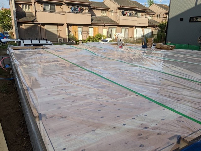 とあるビニール材(ビニールハウス用のビニールです((´∀`*))ヶラヶラ)を敷いてから