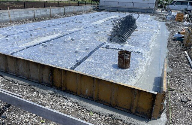 平屋の基礎はやっぱメッチャデカいね。暑くて大変だと思いますがー、Fさんが頑張って終わらせてくれないと