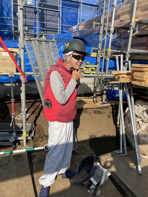 でもヘルメット被るの早くね?!8時前は作業させねーよ!!