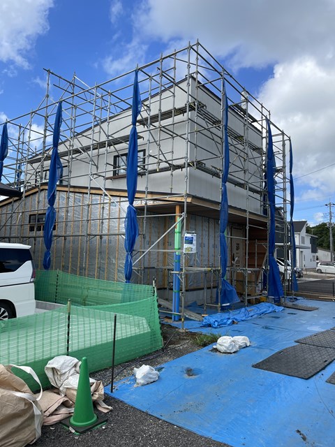 台風予報が出てるから、カントクゥ~が足場シートたたんだお陰で外観が良く見えます😻
