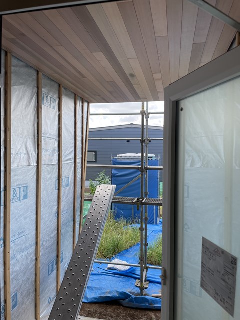 ランドリーから外部デッキへの軒天レッドシダー✨