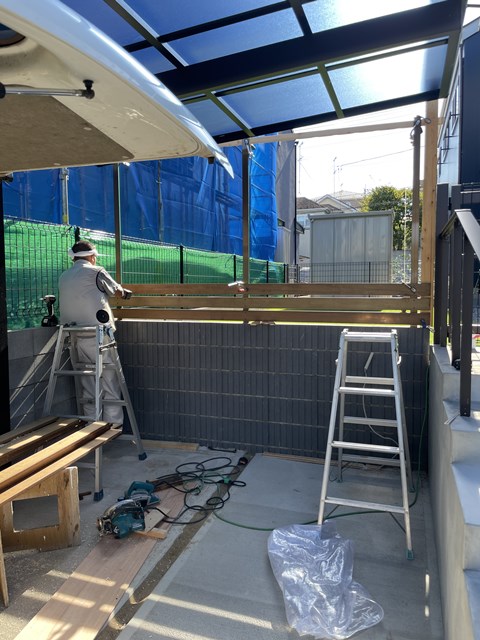 隣で大工Kさんが、N様邸の目隠しデンスを施工してくださってます✨