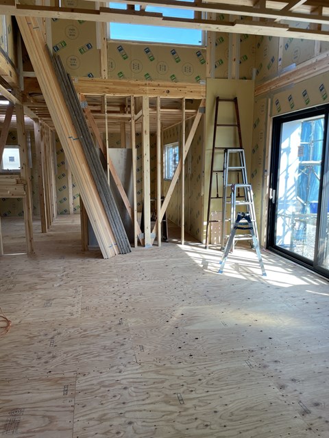 おっ!大工Yさんが軒天にマホガニー施工してくれてる✨これは土曜日の打ち合わせ時に間に合うかな?!