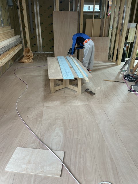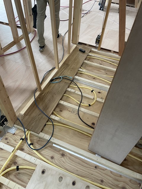 床暖の施工が終わって、床材が張られてますー。