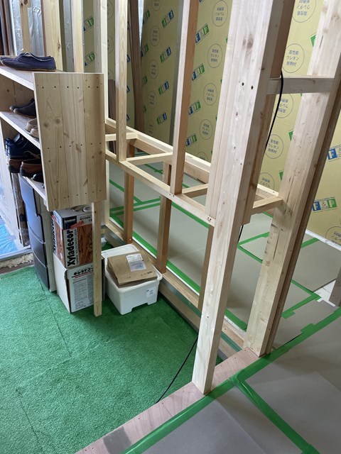玄関のところに何やら下地が組まれておりますぅ~。