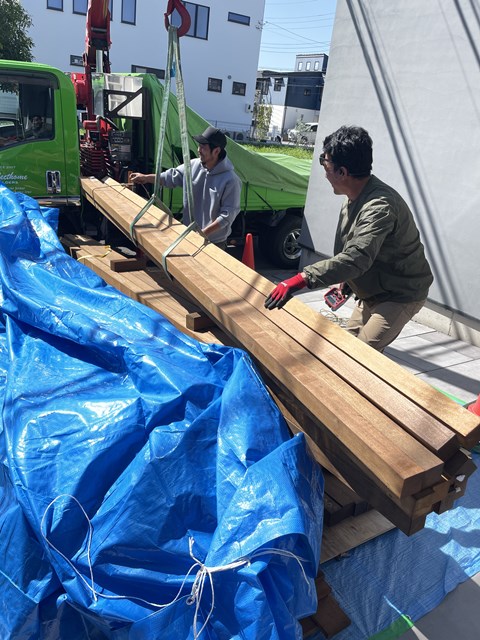 カントクゥ~に怒られながら、大工Yくん玉掛頑張ってます((´∀`))ケラケラ