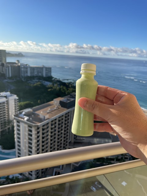 まさか日本から専用のペットボトルを持ってきているとわ。。。