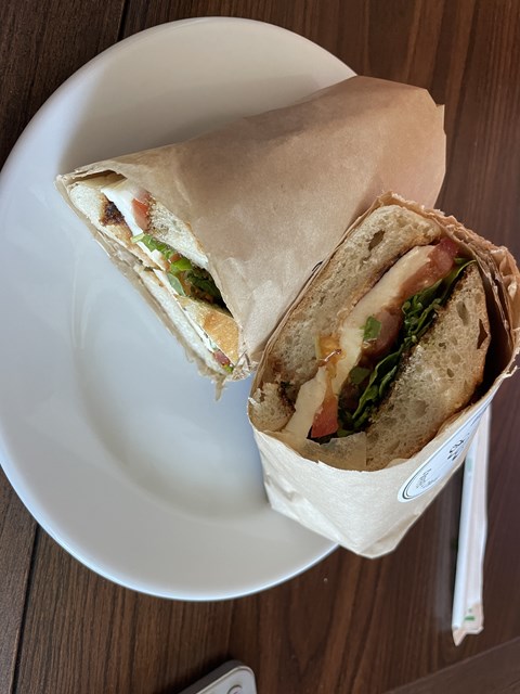 サンドイッチを食べながらぁ(´~`)モグモグ