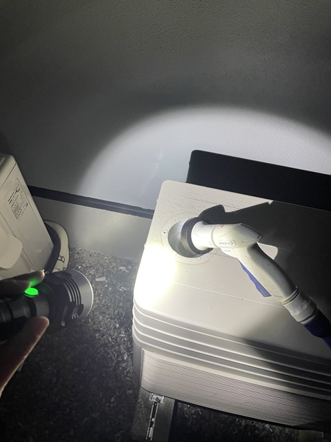 懐中電灯照らしながら水道水を注入中!!