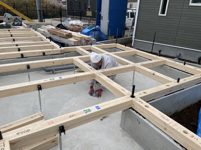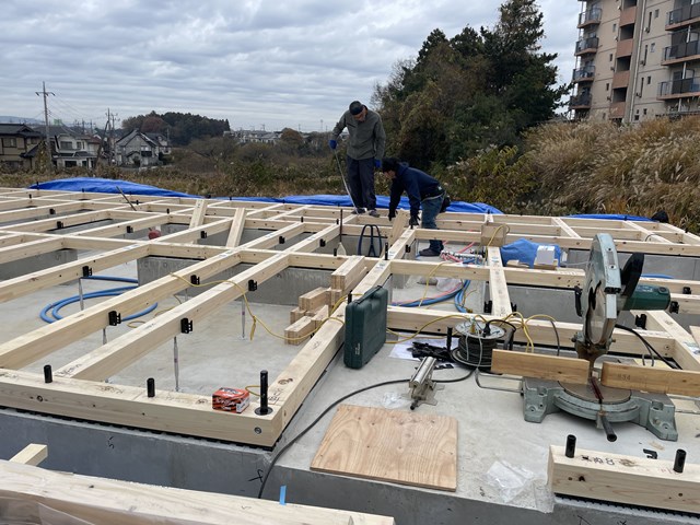 (スラブ打設後10日後くらいで基礎完~先行配管設備工事3日~大工土台7日間そして上棟ですぅ)