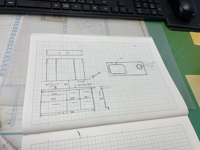 コチラは本日プレゼンする造作洗面の絵なんですけどね