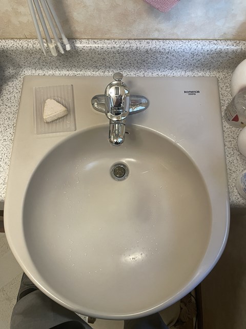 (。´・ω・)ん?珍しい形の洗面だなー。