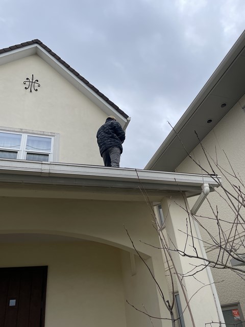 先日の点検時に、なんだか最近雨が降ると寝室の窓当たりでポタポタ雨が当たる音が気になるのよねぇ~