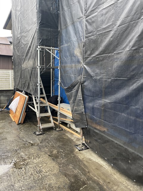 養生のブルーシート剥がしてもらうと、、、