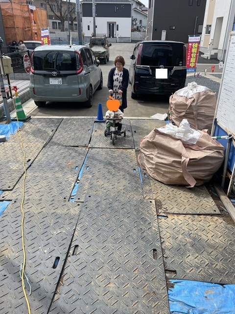 そうなんです!建売の工事をしている外国の方がバリケードしてても