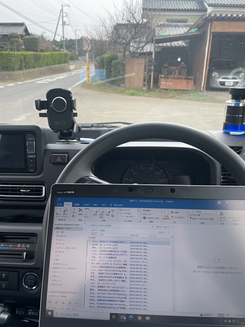軽トラちゃんの中で仕事してま!