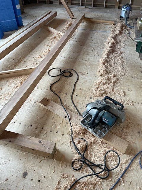 大工Yさんが電動工具でプレーナー加工してくれてます✨