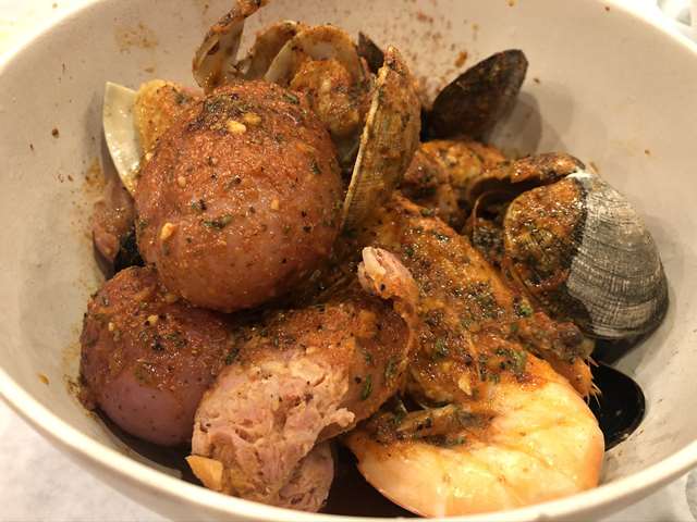 海鮮をピリ辛で手でワイルドに食べる系のお店です。