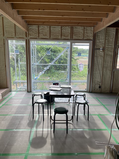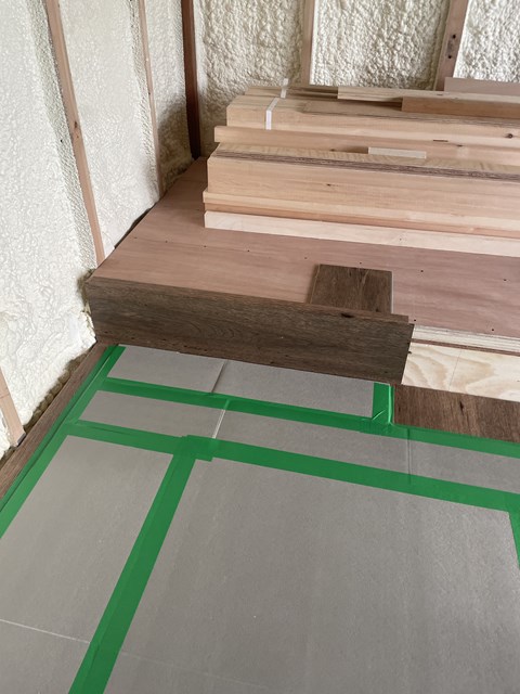 この1段上がるところの床材張り方向を大工Yさんに準備していただき