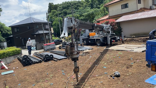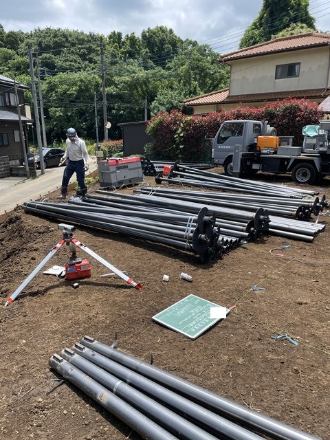いつもと違って、今回の施工方法は鋼管杭になります☝