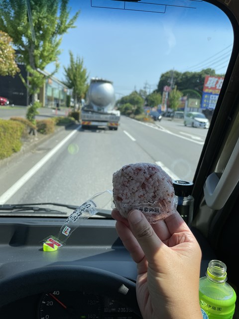 奥様から昼の🍙どうするぅ⤴って連絡来たので、到着時間を告げて事務所で食べるよーって言って高速乗ると