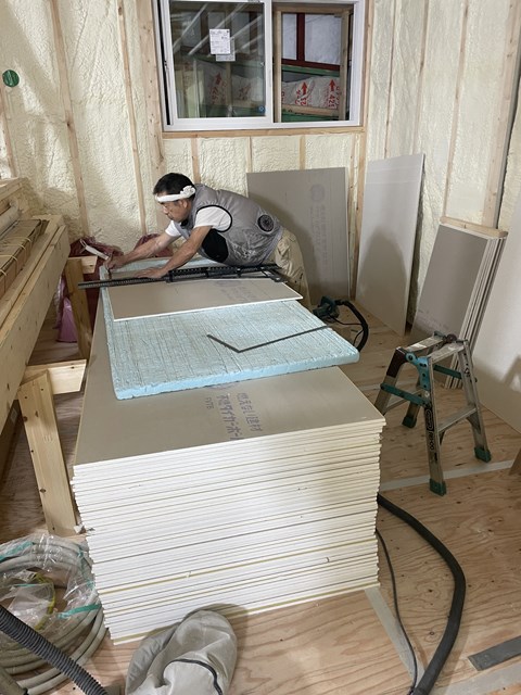 中では大工Kさんがメッチャ頑張ってます~💪 意外と中涼しいんですぅ⤴