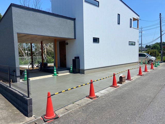 駐車場部の生コン打設したのね✨