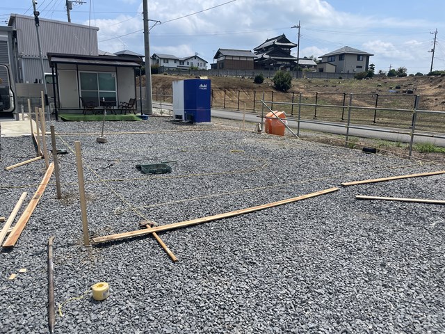 外構Tさん、木杭打つのにマジでバタ夫、、、