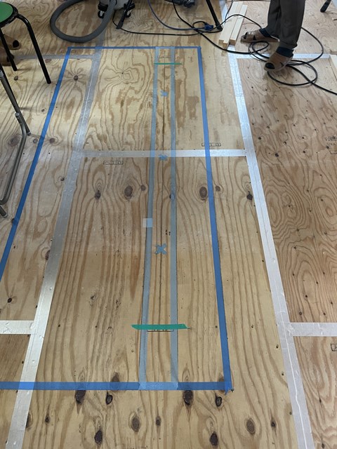 打ち合わせするのにカントクゥ~が現場でマスキングテープしてくれるの!