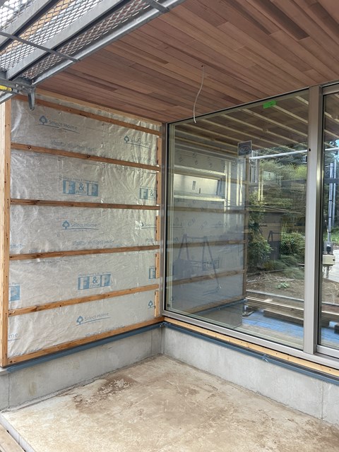 タイルデッキ部の天井レッドシダー✨