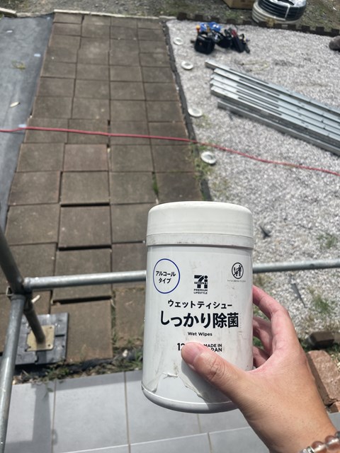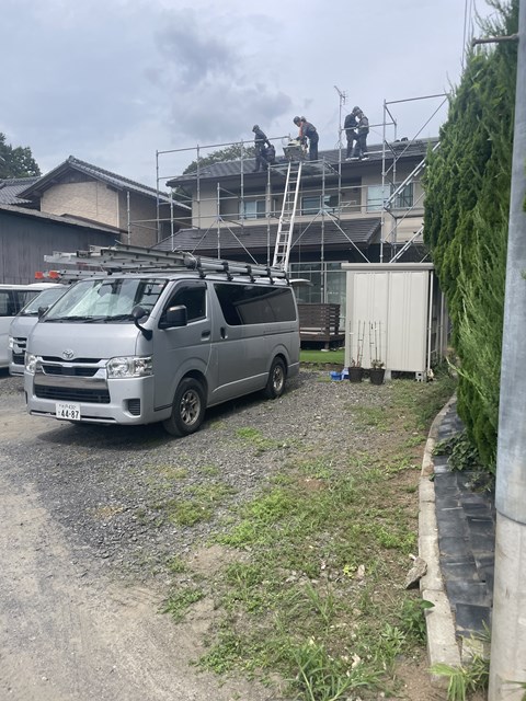 台風対策で朝一足場組んで太陽光設置工事着手してるのよ!!