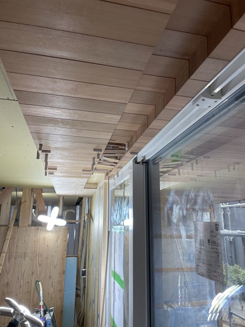 タイルデッキと室内の天井繋がり☝