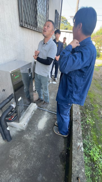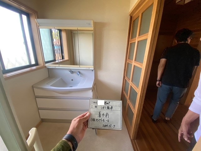写真的には、M所長がSちゃんにユニットバスの墨出しのやり方を教えている写真かしら🤭