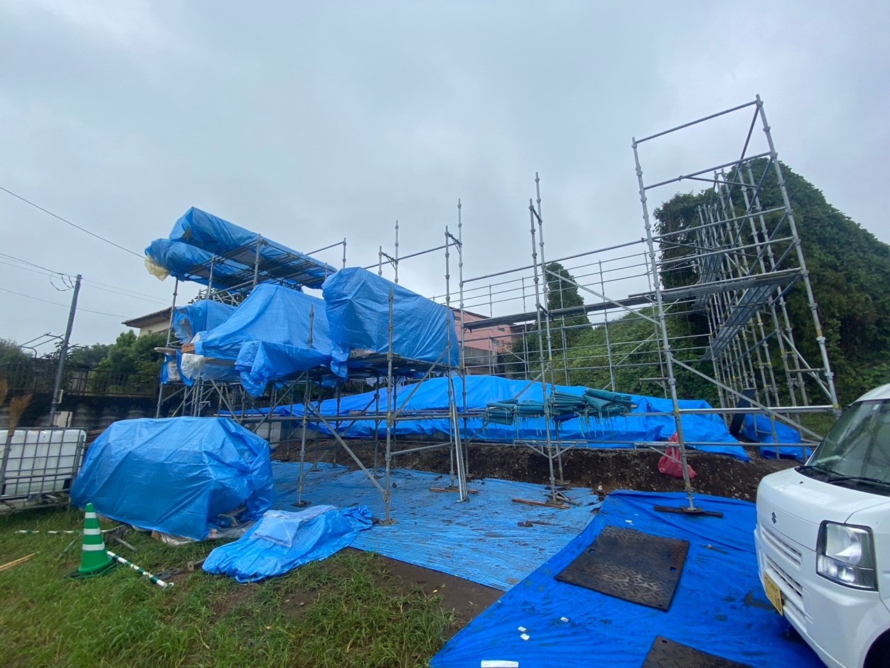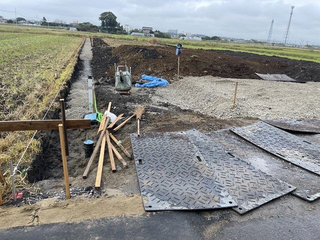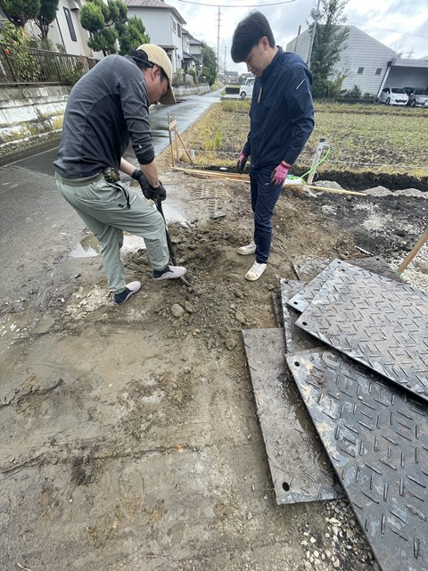 外構Tさんが、土留め工事の段取りをしておりますぅ⤴