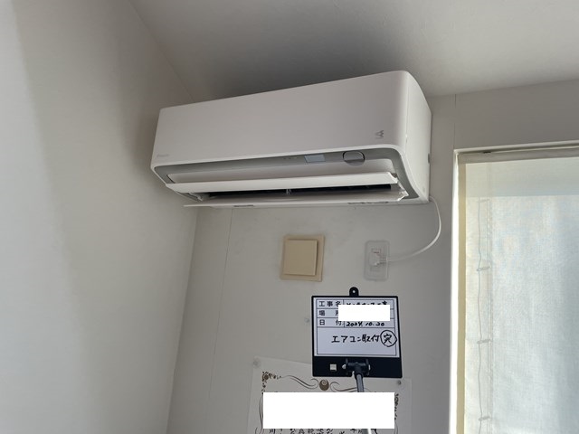 ワタクシは、エアコン取付完了写真を撮りに📷